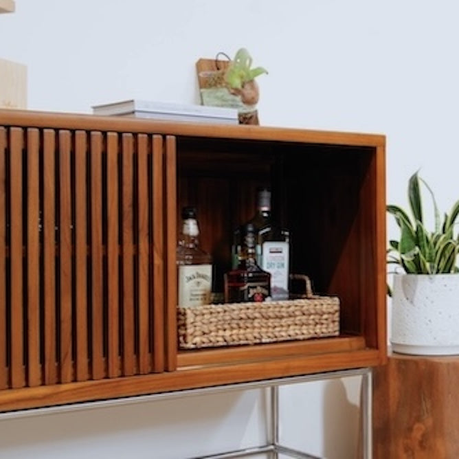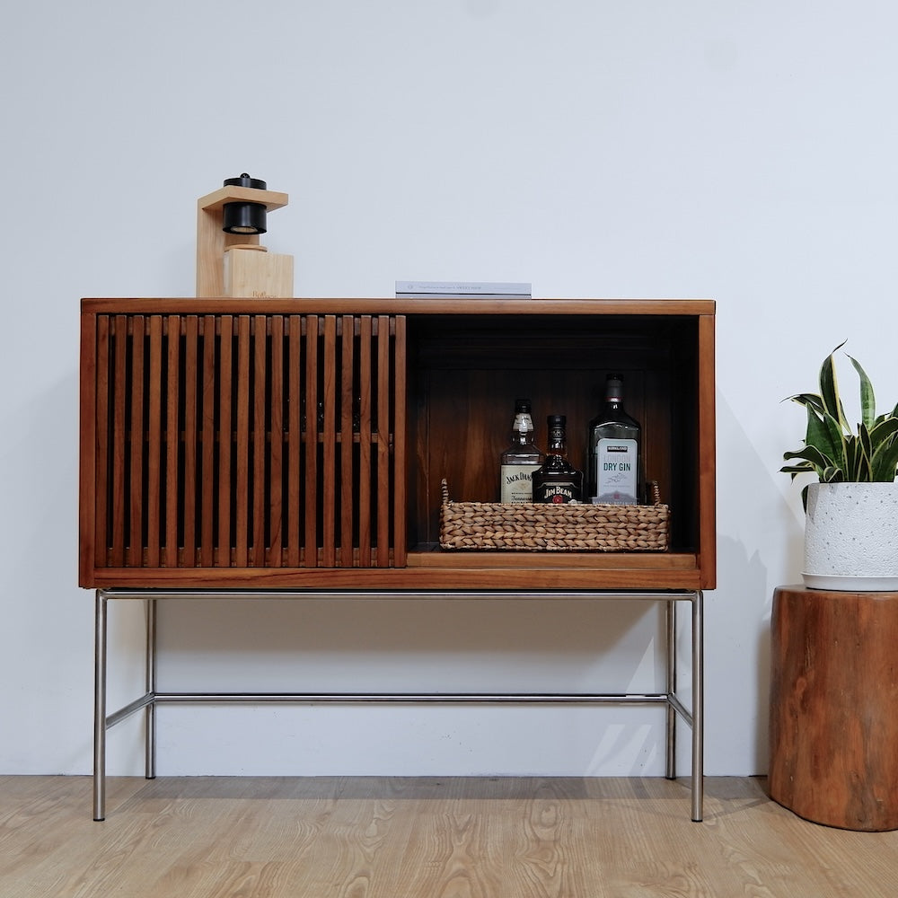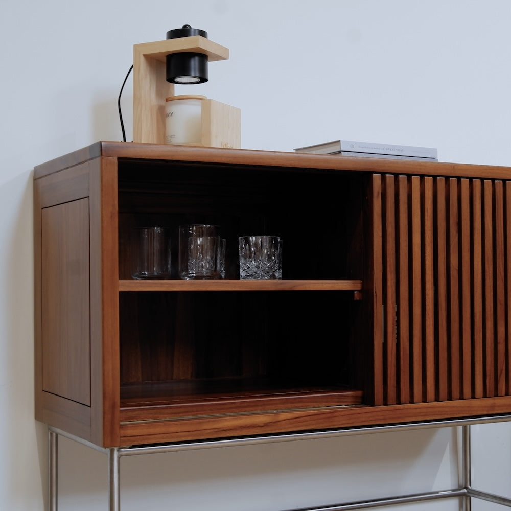 溫潤柚木結合俐落金屬腳座
